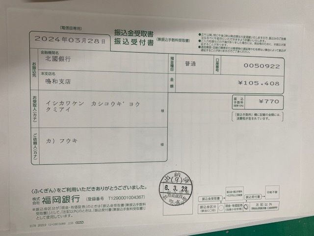 売り上げの全額を同業者の団体であります石川県菓子協同組合に振り込みました事お知らせいたします